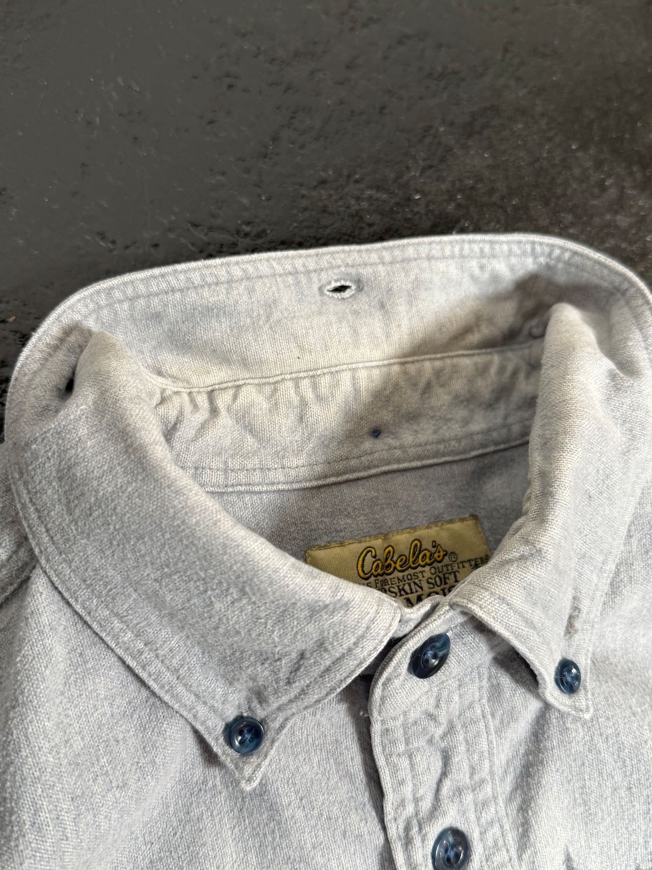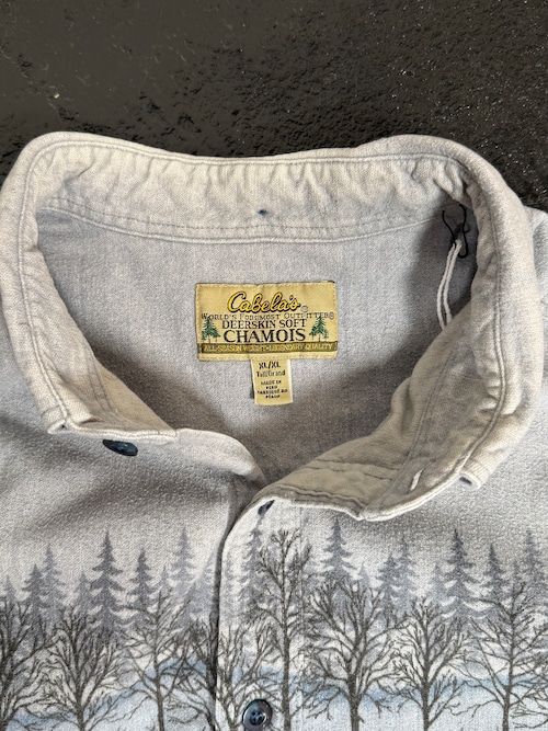 90年代頃のアメリカ老舗アウトドアブランド Cabela’s(カベラス)の定番シャモアシャツです。