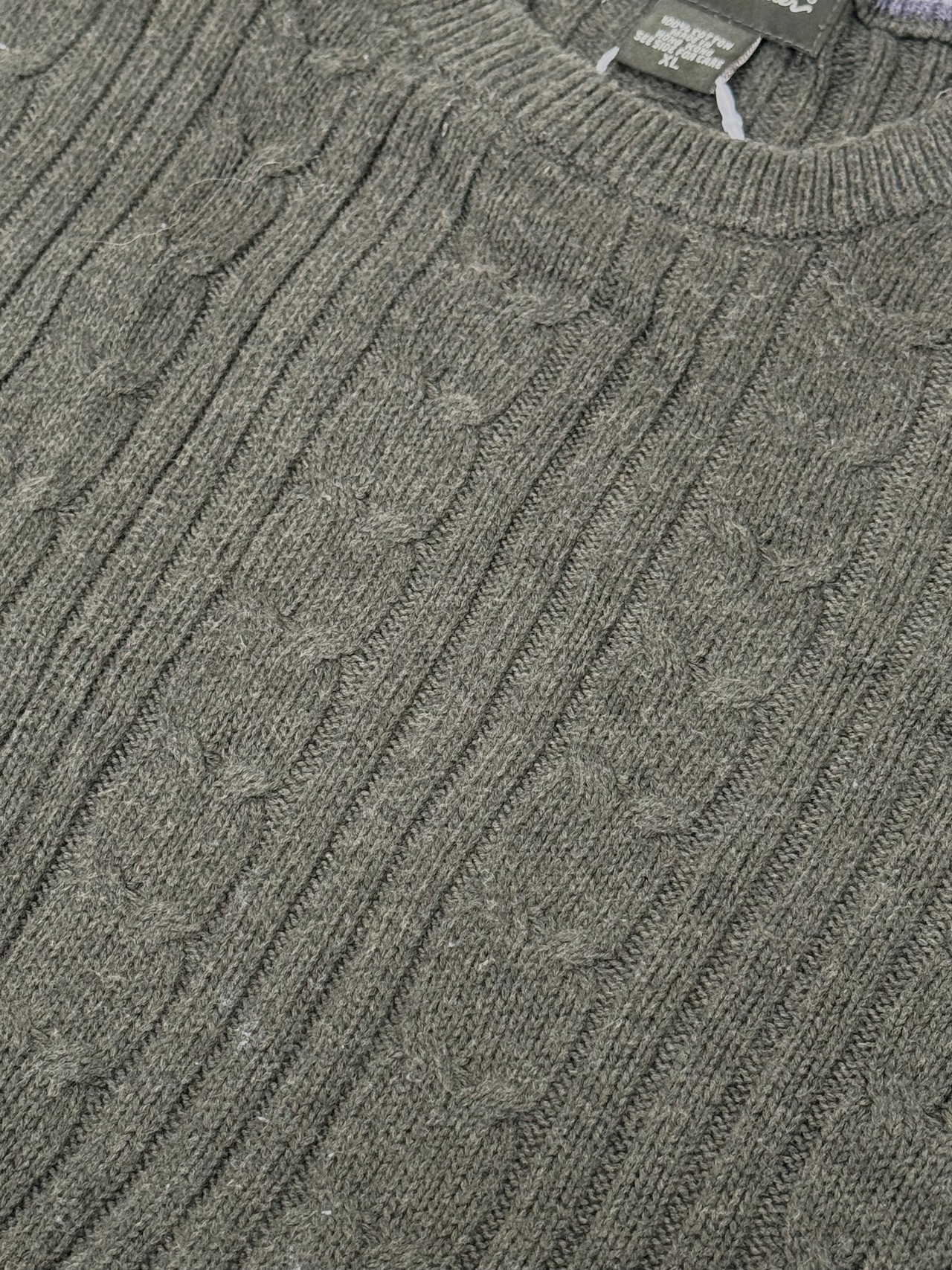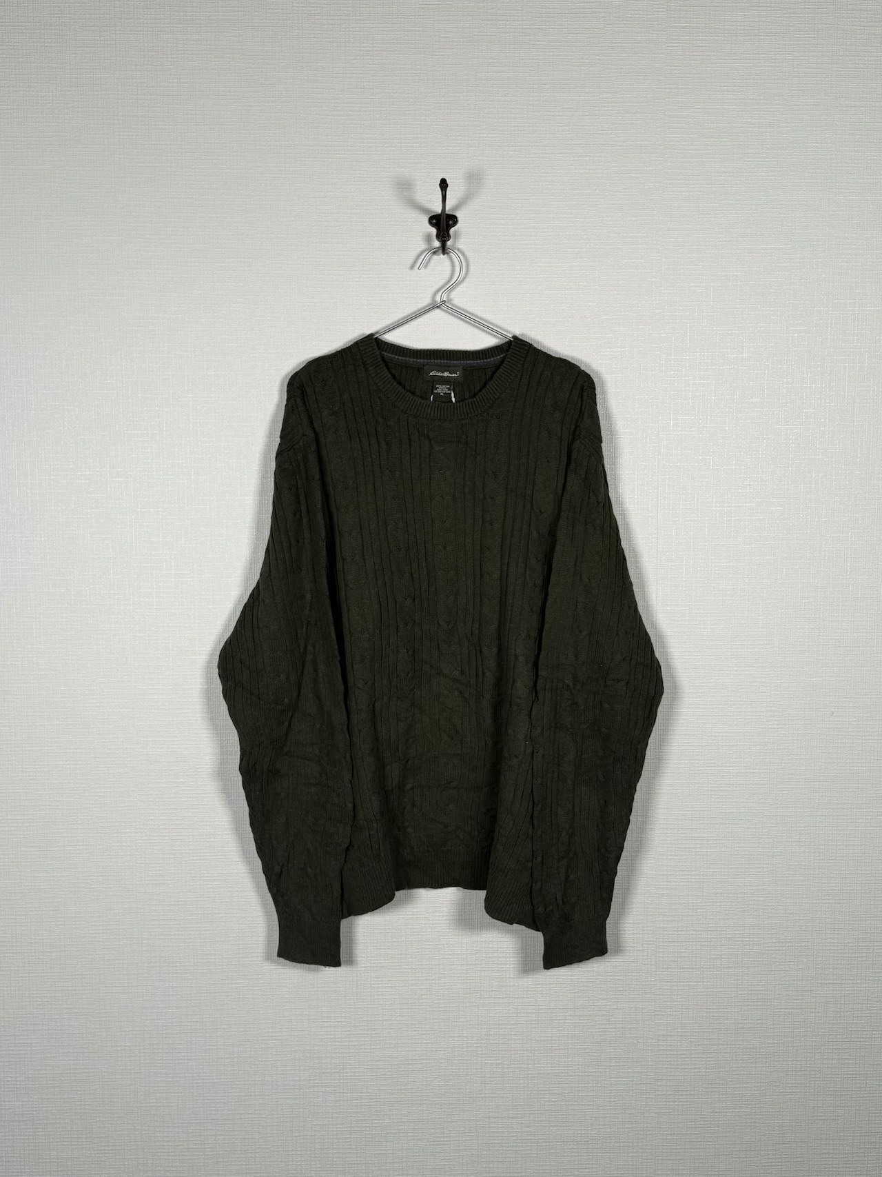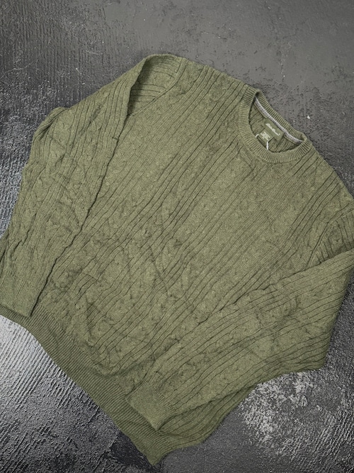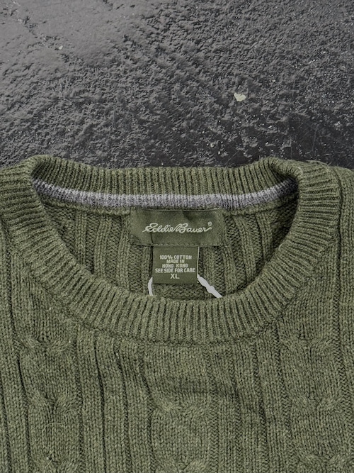 Eddie Bauer Cotton Cable Knit Sweater Olive Green メンズXL
