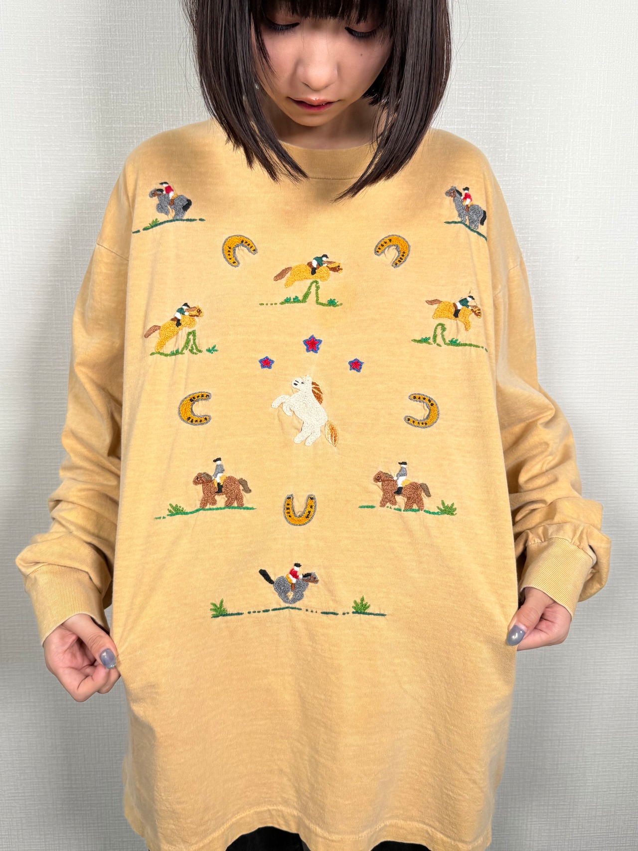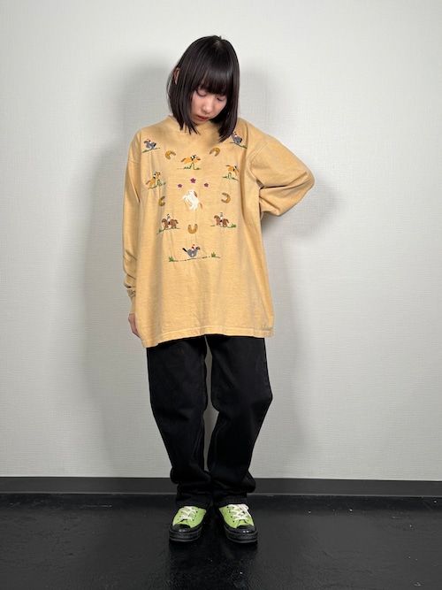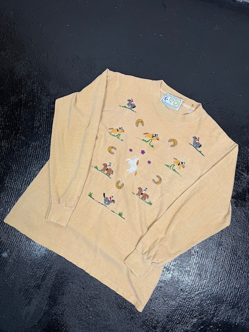 90’s Shari Swan Design “MAGICAL TEES” Hand Embroidered Long sleeve T-shirts メンズM〜L