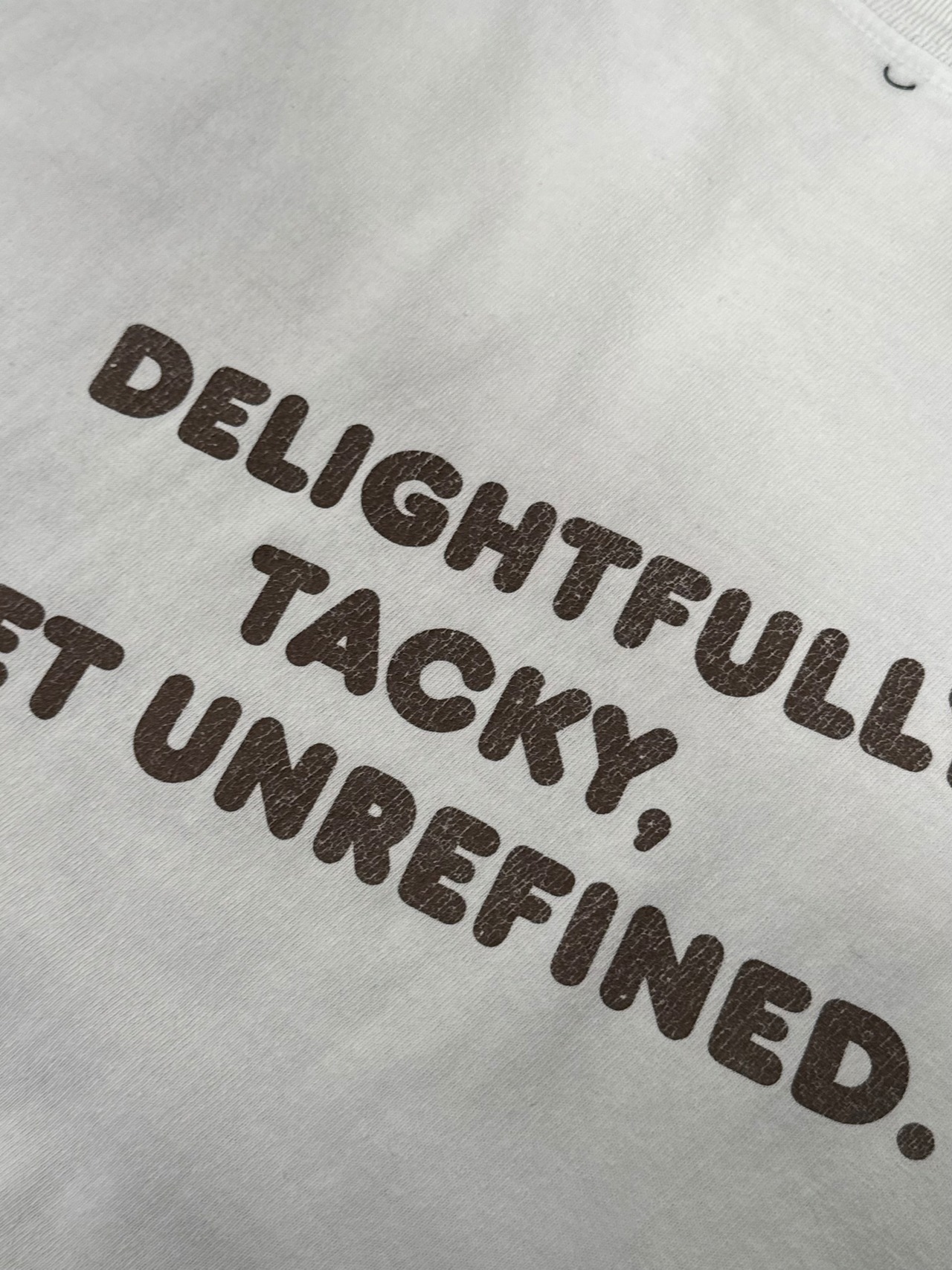 バックにはブランドスローガン“Delightfully Tacky, Yet Unrefined.”