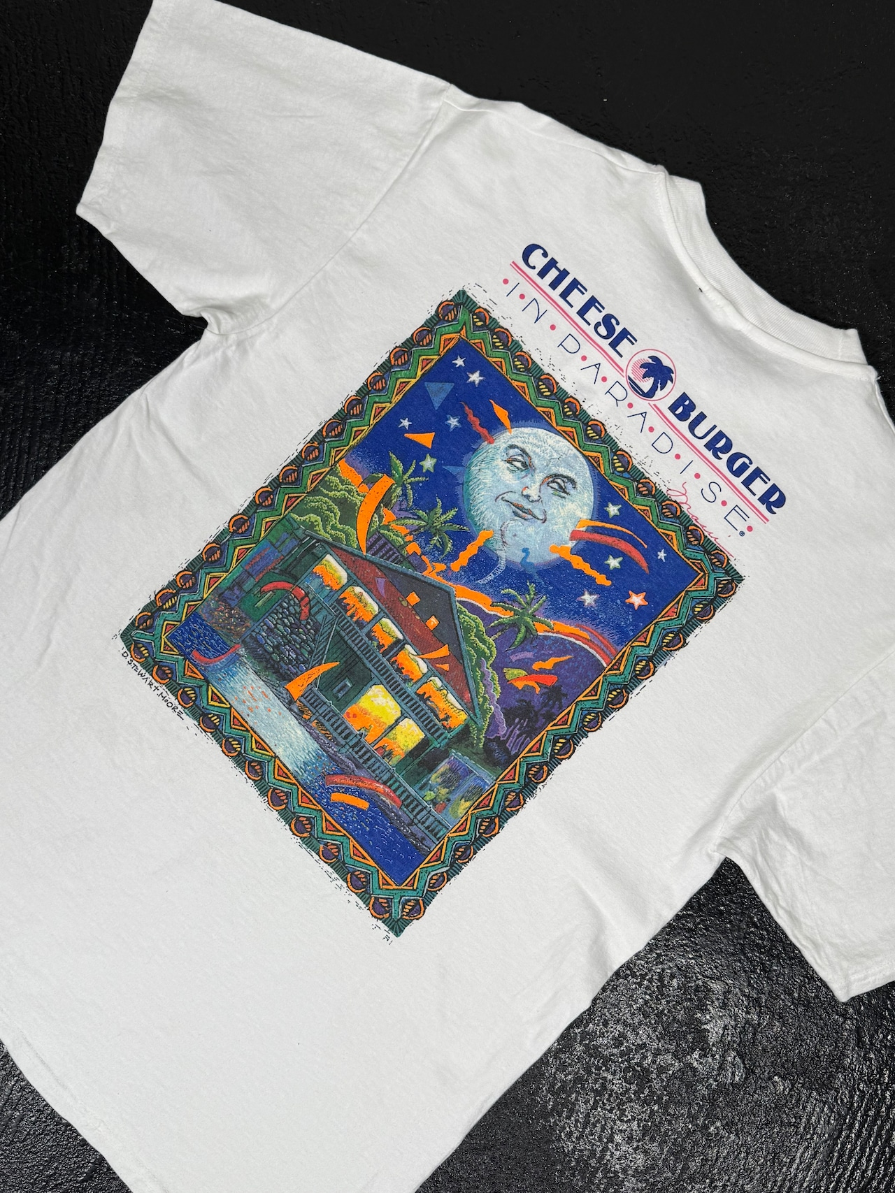 90年代後半から2000年代あたりのCheeseburger in Paradise(チーズバーガーインパラダイス)の両面プリントTシャツです。