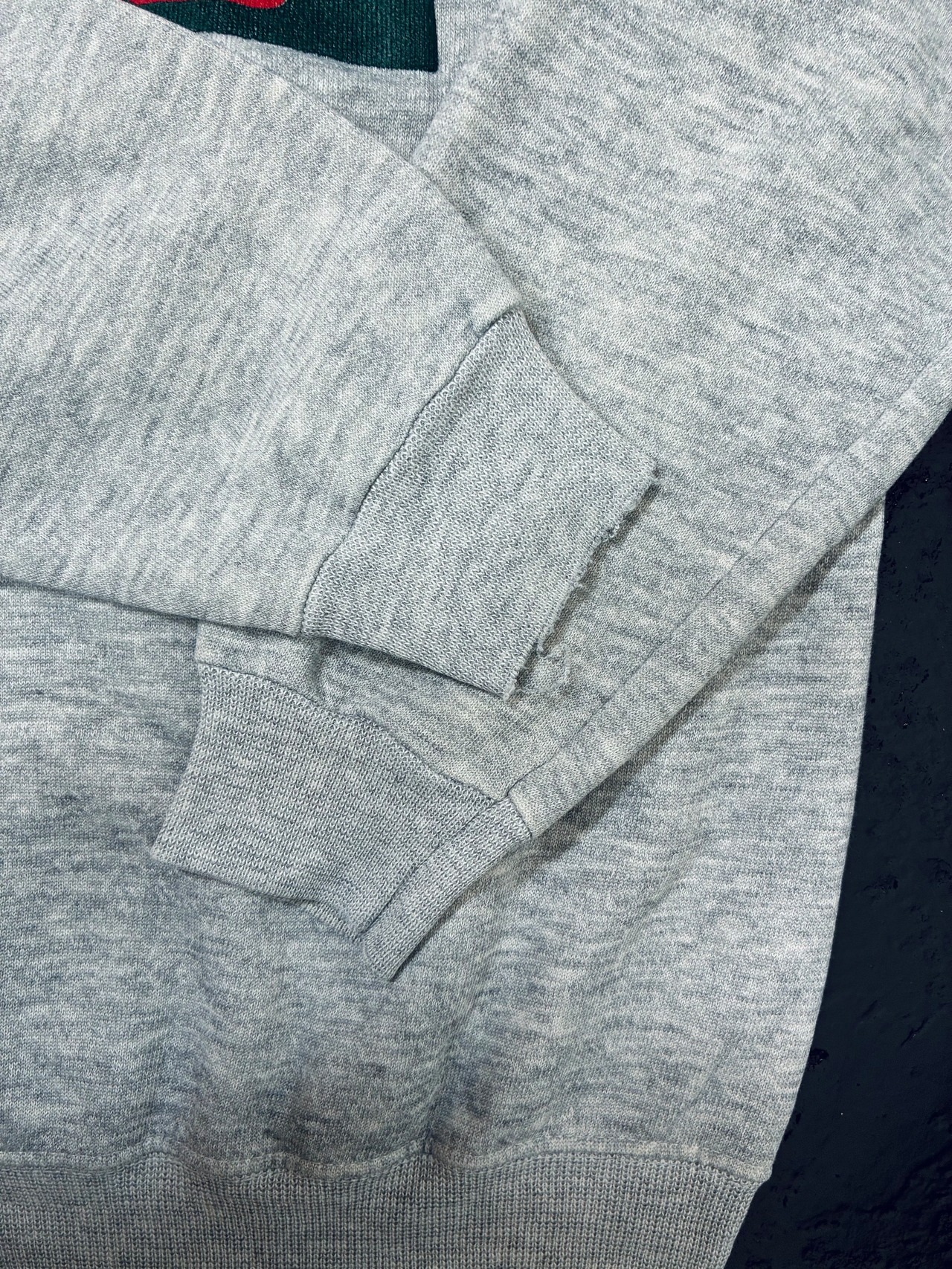 カラフルなグラフィックと霜降りグレーのボディのコントラストが映える古着らしい一枚です。