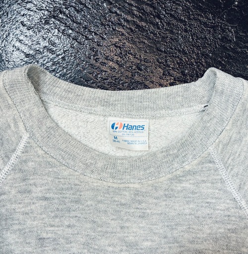 ヘインズボディにコットン×アクリル×レーヨンのミックス素材を採用した軽やかな着心地で、ラグランスリーブのシルエットがいかにも80sらしい雰囲気を醸し出しています。
