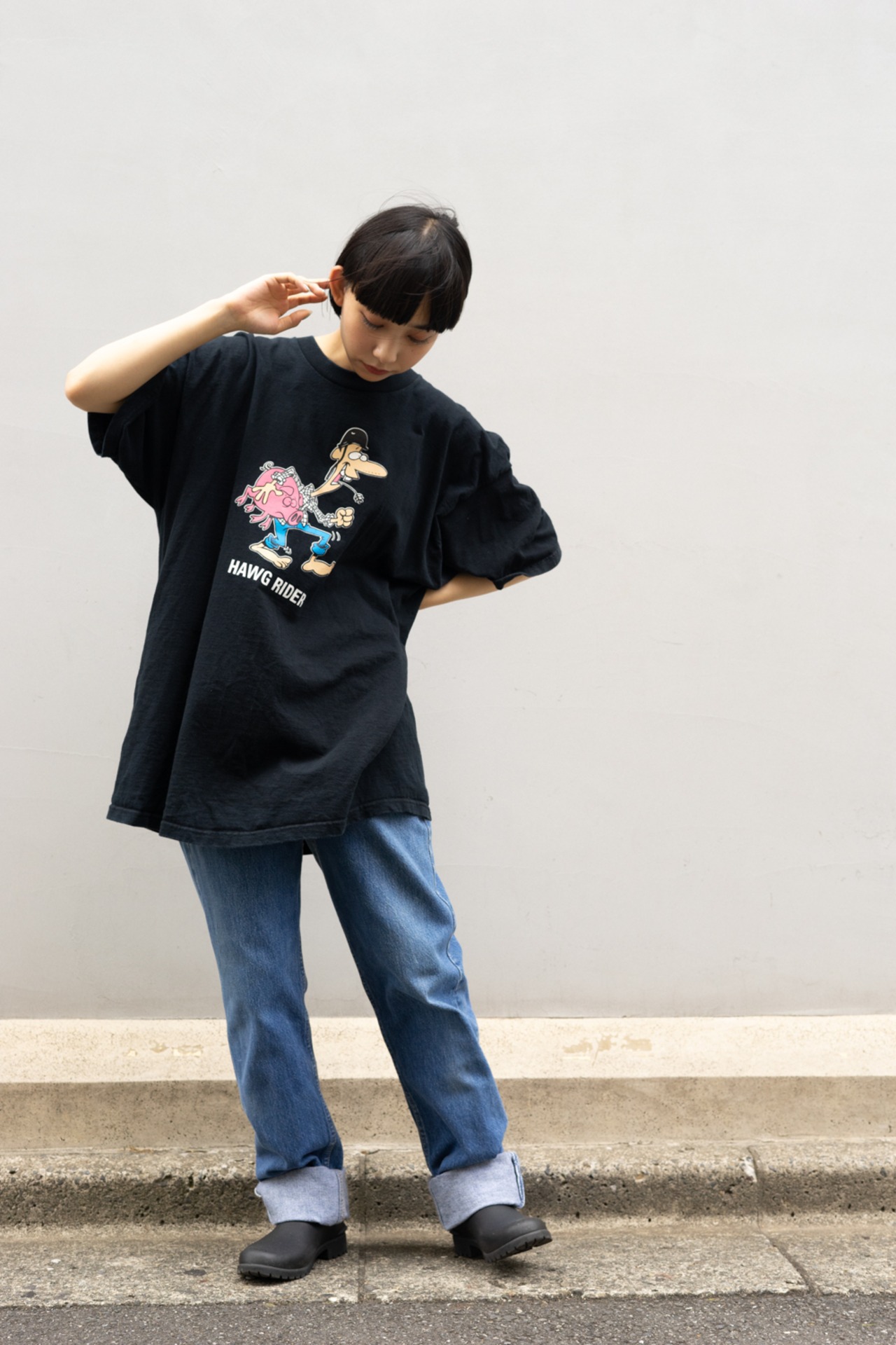 HAWG RIDERというのはハーレー乗りのようなもので、豚を抱えているバイカーがフロントにはプリントされています。
